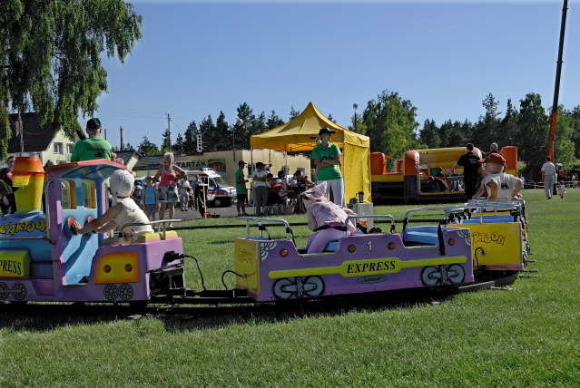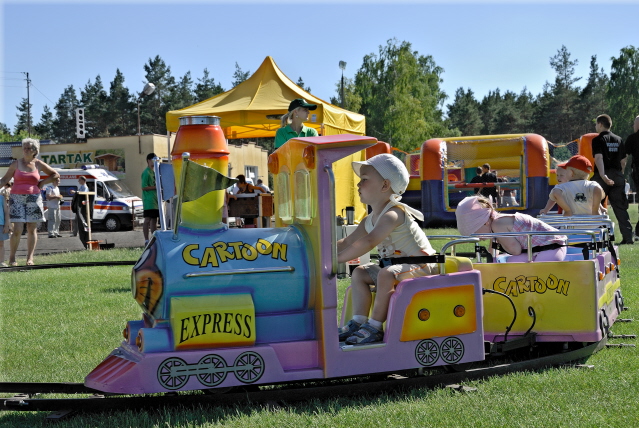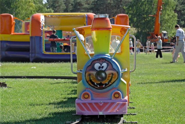 Kolejka służy do przewozu naszych milusińskich po torze w kształcie koła lub elipsy. Kolejka składa się z lokomotywy i dwóch wagonów, która może wyruszyć w trasę z dziesięcioma pasażerami. Gwarantujemy Wam moc niezapomnianych wrażeń dla Twoich dzieci. Dorośli też mogą w niej usiąść. Polecamy!
